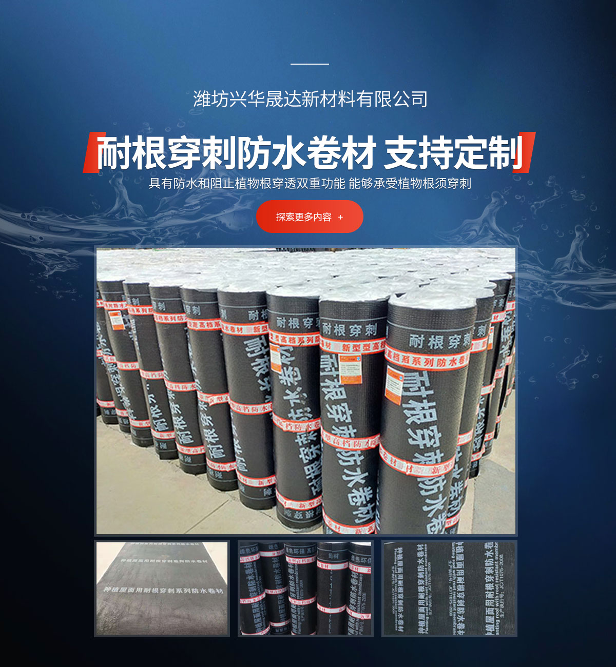 主要產品有:高分子防水卷材、改性瀝青防水卷材、耐根穿刺防水卷材等產品